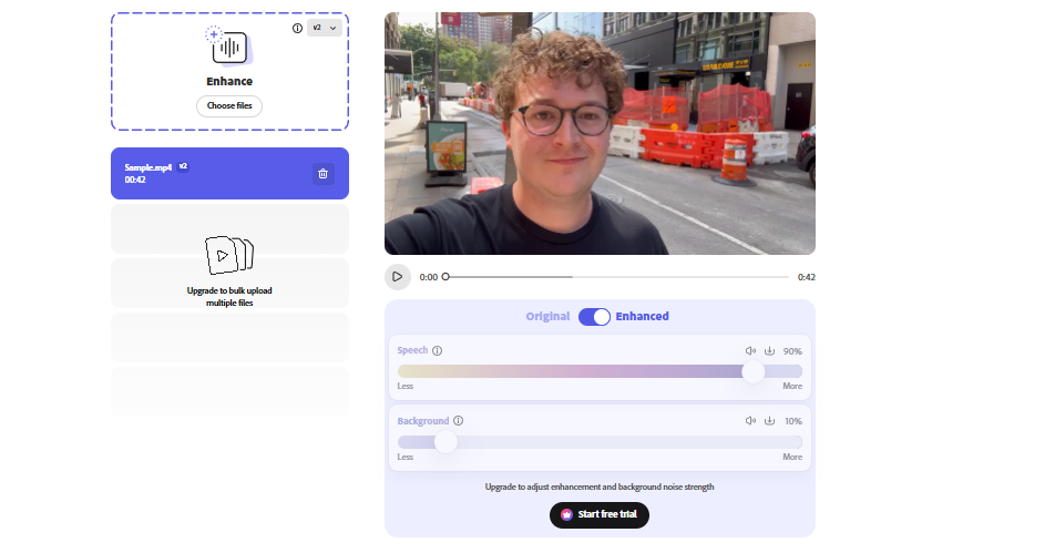 - Separación inteligente: La IA analiza la frecuencia de la música y la diferencia de los patrones de habla para remover el fondo mientras intenta preservar al máximo la calidad de la voz original.