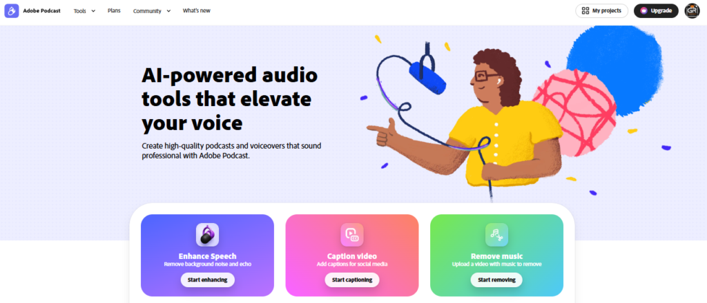 Adobe Podcast representa la incursión de la suite en el mundo del audio profesional basado en la web, utilizando algoritmos avanzados de inteligencia artificial para democratizar la calidad de grabación de nivel de estudio. La plataforma está diseñada con una interfaz extremadamente limpia y amigable, centrada en elevar la claridad de la voz humana sin que el usuario necesite conocimientos profundos de ingeniería de sonido. Es la solución ideal para creadores de contenido que buscan un acabado profesional en sus locuciones y podcasts de manera rápida y eficiente.