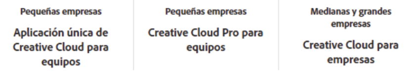 • Creative Cloud Enterprise: Es la opción para grandes corporativos que necesitan seguridad máxima de datos, permite controlar el acceso de miles de usuarios desde un solo lugar, ofrece propiedad absoluta de los archivos creados y añade capacitación personalizada con expertos en inteligencia artificial