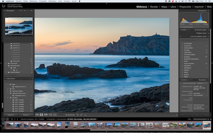 - Módulo Biblioteca o Library: Es el punto de partida donde importamos las fotos de la cámara y las organizamos usando palabras clave o clasificaciones antes de empezar a editar.