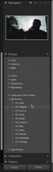 - Historia: Es un registro cronológico infinito de cada movimiento que realizas sobre la fotografía, A diferencia de otros programas Lightroom guarda este historial para siempre, permitiéndonos regresar a un paso que hicimos hace días o semanas con total precisión.