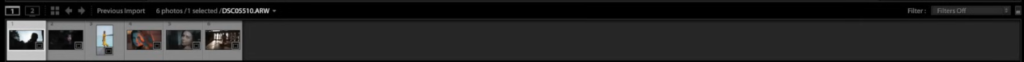 - Información de archivo: Muestra detalles básicos sobre cada miniatura como el nombre del archivo original y si la fotografía tiene ajustes de revelado aplicados actualmente.