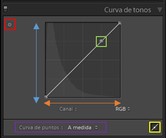 - Movimiento: Subir la curva aclara el rango tonal seleccionado y bajarla lo oscurece.