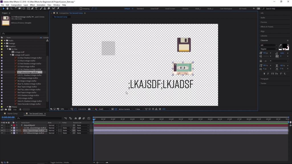 Una composición tiene su propia línea de tiempo y puede contener capas de distintos tipos: video, imágenes, textos, formas, sólidos y hasta otras composiciones. Cada elemento que agregas se convierte en una capa que puedes animar de forma independiente.